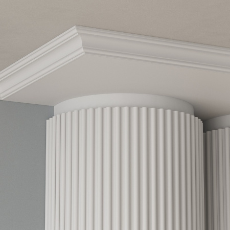 Классический настенный молдинг со спокойными завитками. Может быть использован для отделки нижней части плинтуса.