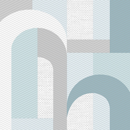 Обои белого цвета с голубым геометрическим рисунком.