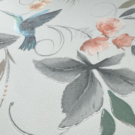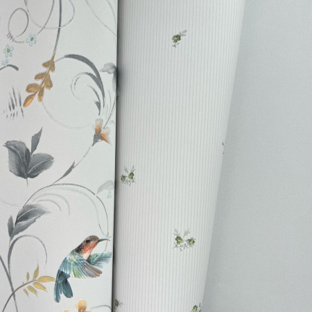 На светло бежевом цвете птицы колибри.