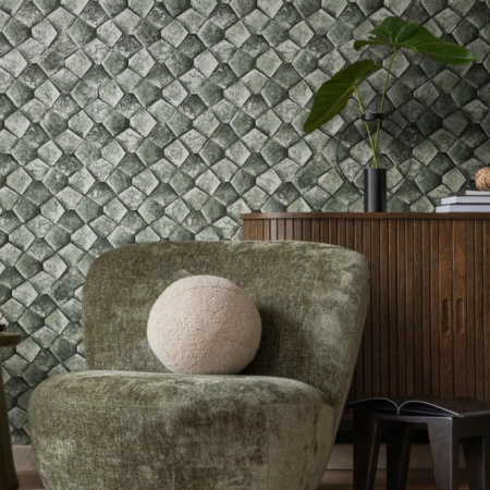 Кристаллическая или чешуйчатая структура рептилий представляет собой дизайн, который полностью зависит от восприятия зрителя. Испытывая любопытство и смотря на вещи своим собственным взглядом, мы можем увидеть что-то с новой стороны. Рисунок с элементами экстравагантности и фантазии станет центром внимания в интерьере и отлично подойдет для зонирования.