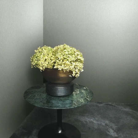 Стена из гранита с включениями руды придает помещению благородный и изящный внешний вид, сочетающий в себе современные тренды и актуальные цветовые решения.